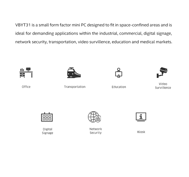 What makes VBYT-31 truly special is its combination of fanless and compact design and a large array of industrially-focused I/O ports, which makes it an ideal for space-sensitive applications and catering to most requirements in the market.