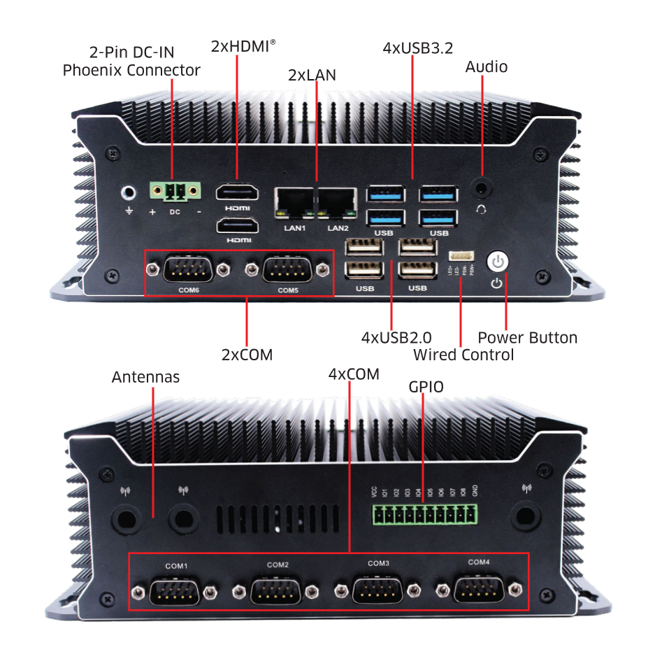 Power: 9V-35V (2-Pin DC-IN Phoenix Connector)