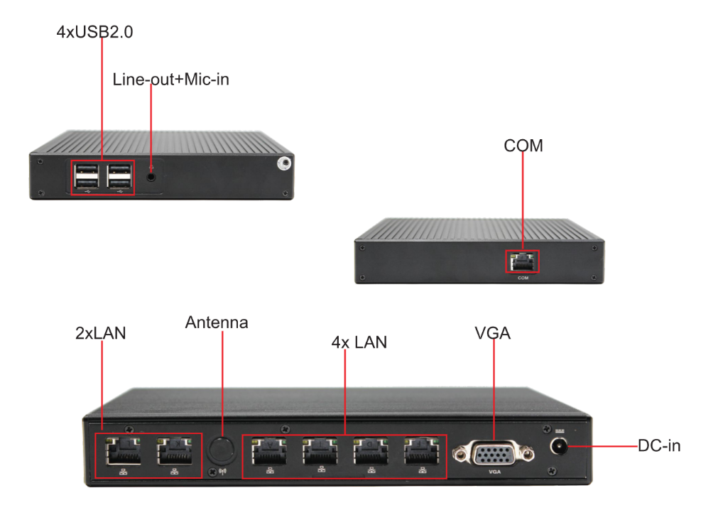 I/O Ports: 6xLAN, 1x COM, 4xUSB2.0.