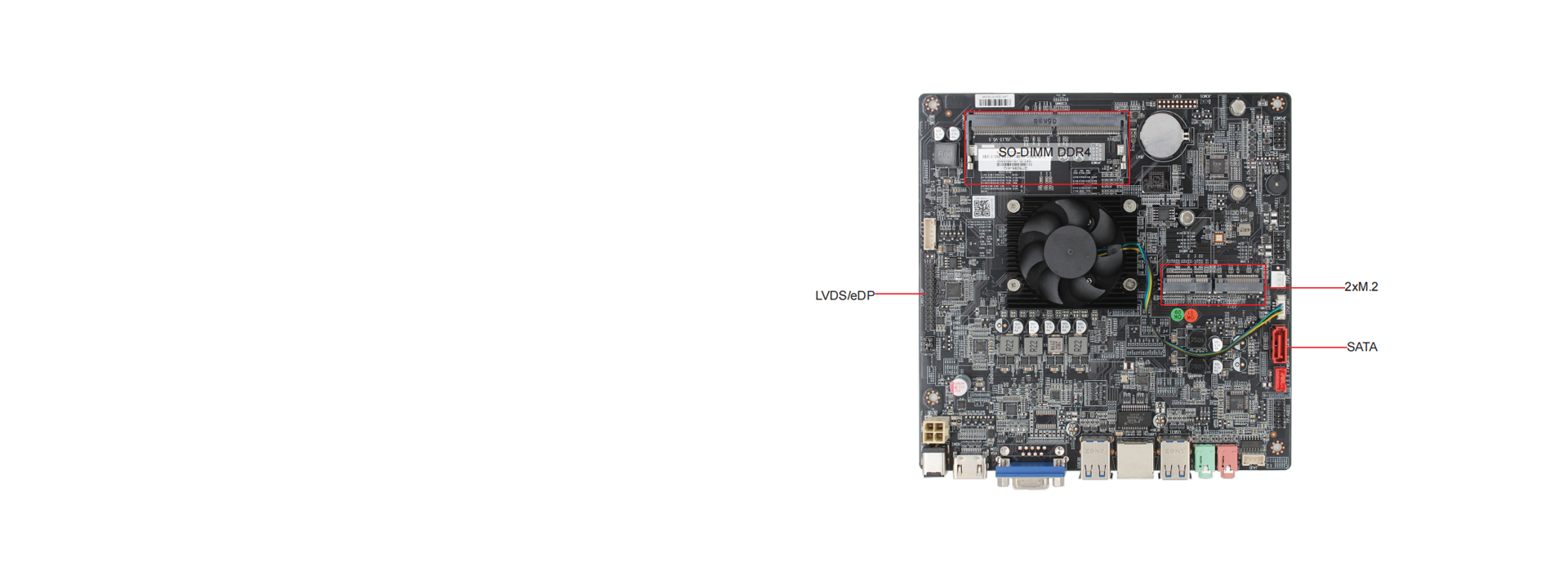灵活存储与扩展:支持M.2 SSD、SATA和eMMC存储,满足您不同的存储需求。同时,提供M.2 WiFi和TPM2.0安全模块扩展槽,实现更高级别的安全和网络连接。
